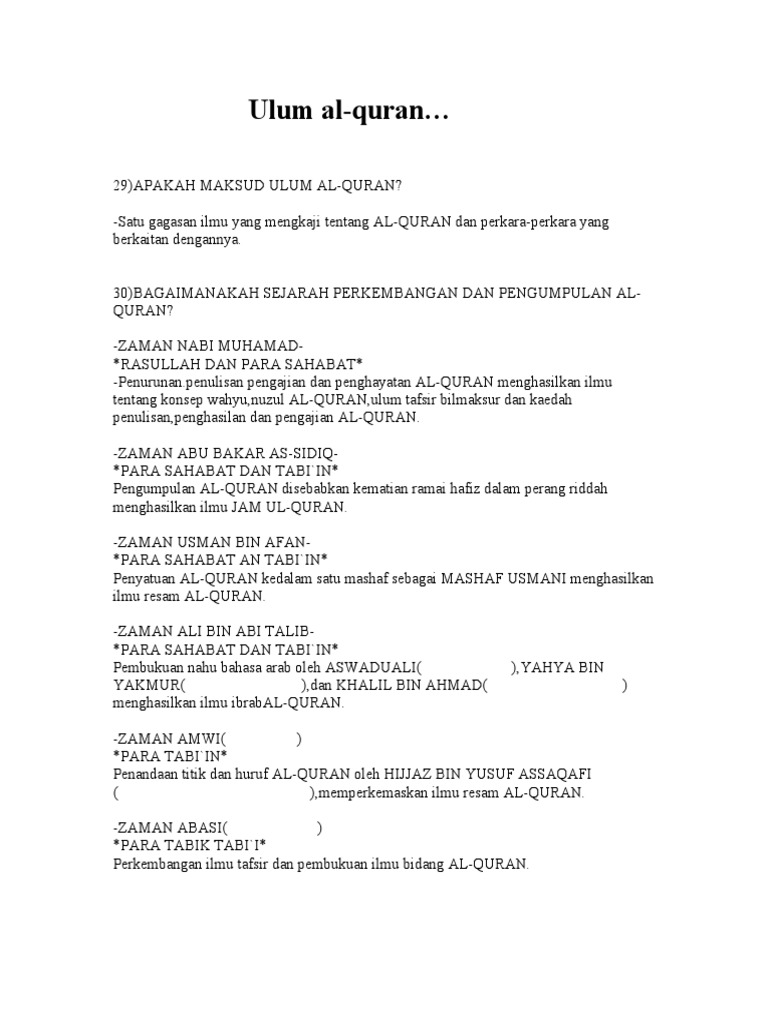 Pengajian Al Quran Dan Al Sunnah Ulum Al Quran Tingkatan 4 Pdf
